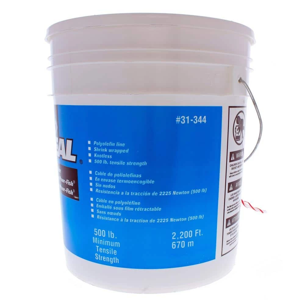 Ideal Powr-Fish extra heavy duty pull-line is used to install electrical wiring in conduits in a building. Contractors typically attach a foam carrier to the end of the pull-line and use compressed air and blow it through the conduit. Pull-line features convenient packaging in a bucket for 2,200 ft. length with pre-punched top for easy access and to keep the pull-line from spilling or tangling.