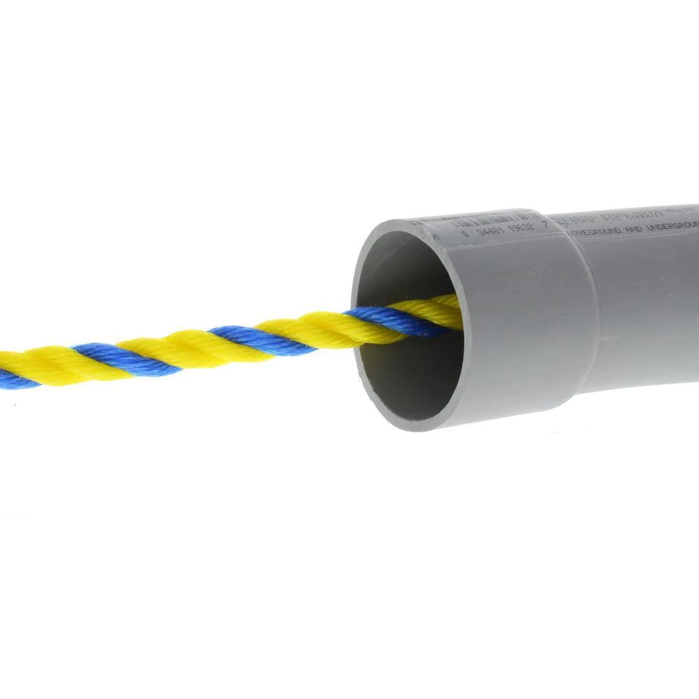 Ideal Pro-Pull Pull-rope in yellow color is made of polypropylene for longer durability and strength. It is a rugged, lightweight and mildew resistant rope. It is a low-friction rope that slides easily through conduit and piping without being snagged. It features a unique braid design ensures that strong and resistant to rot, mildew and stretching. It comes is varied tensile strengths and lengths to meet the needs for any job application.