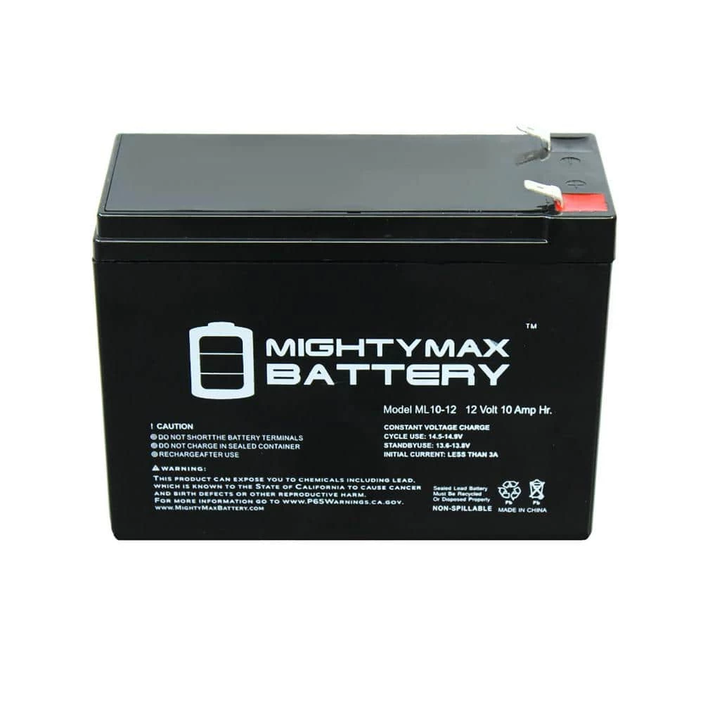 Delivering power when you need it, the MIGHTY MAX ML10-12 12-Volt 10 Ah uses a state of the art, heavy-duty, calcium-alloy grid that provides exceptional performance and service life in both float and cyclic applications. The ML10-12 is an Absorbent Glass Mat (AGM) technology with a valve regulated design, that can be used in enclosed and indoor environments without leaking or maintenance, providing a superior performance for thousands of models. MIGHTY MAX SLA batteries are utilized in a wide variety of applications including, Consumer Electronics, Electric Vehicles, Engine Starters, Golf Carts, Hunting, Lawn and Garden Tools, Medical Mobility, Motorcycles, Power sports, Portable Tools, Solar, Toys and Hobby, Access Control Devices, Emergency Lighting, Security and more.