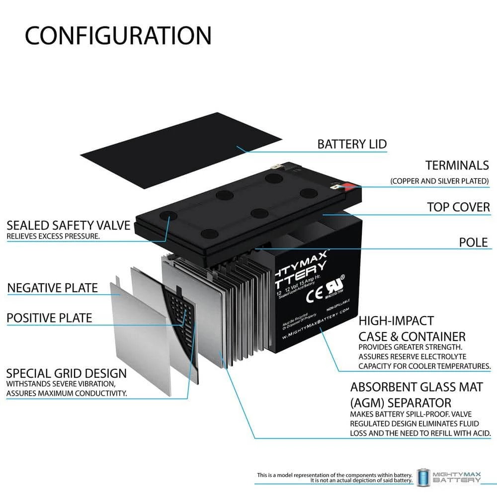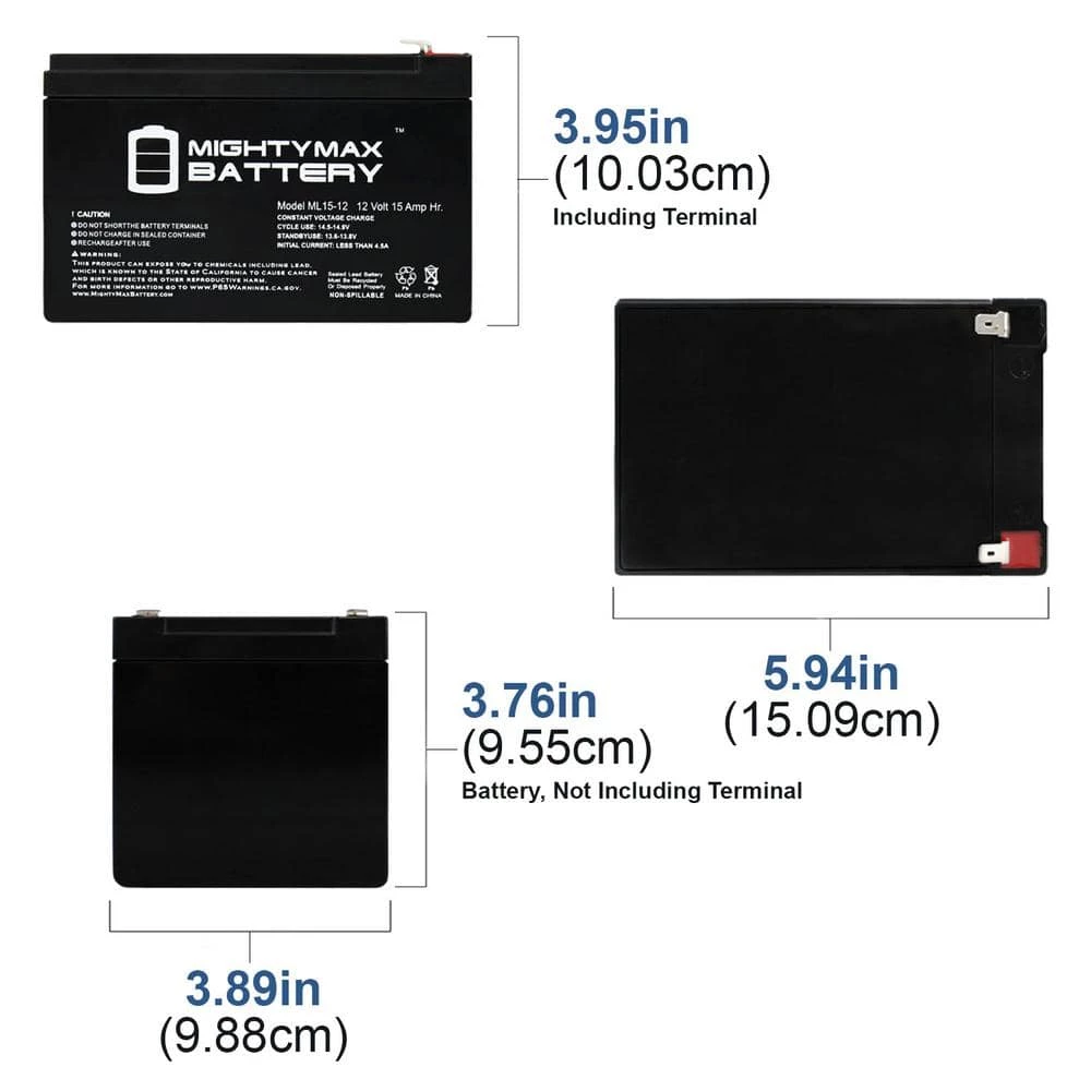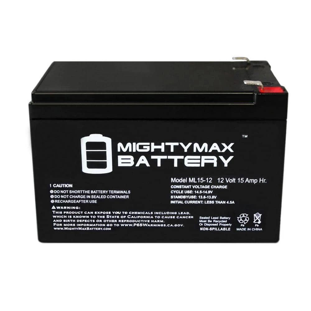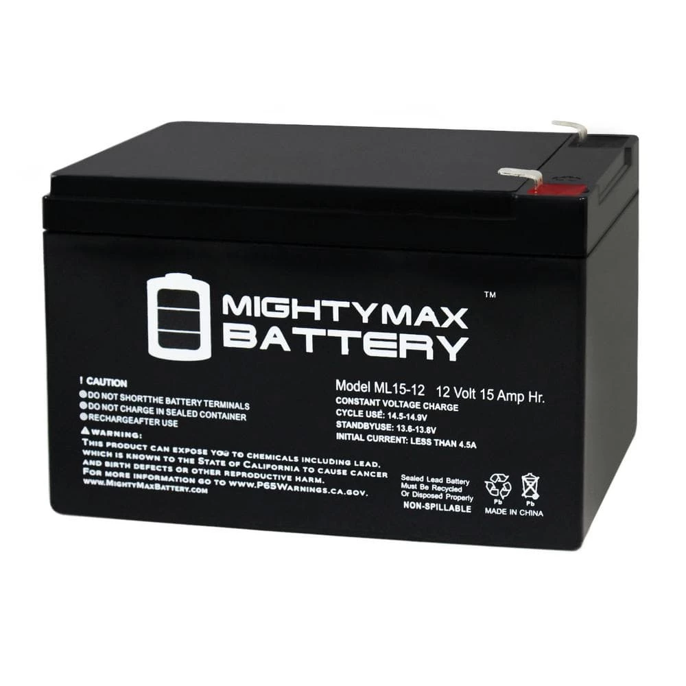 Delivering power when you need it, the Mighty Max ML15-12 12-Volt 15 Ah uses a state of the art, heavy-duty, calcium-alloy grid that provides exceptional performance and service life in both float and cyclic applications. The ML15-12 is an Absorbent Glass Mat (AGM) technology with a valve regulated design, that can be used in enclosed and indoor environments without leaking or maintenance, providing a superior performance for thousands of models. Mighty Max SLA batteries are utilized in a wide variety of applications including, Consumer Electronics, Electric Vehicles, Engine Starters, Golf Carts, Hunting, Lawn and Garden Tools, Medical Mobility, Motorcycles, Power sports, Portable Tools, Solar, Toys and Hobby, Access Control Devices, Emergency Lighting, Security and more.