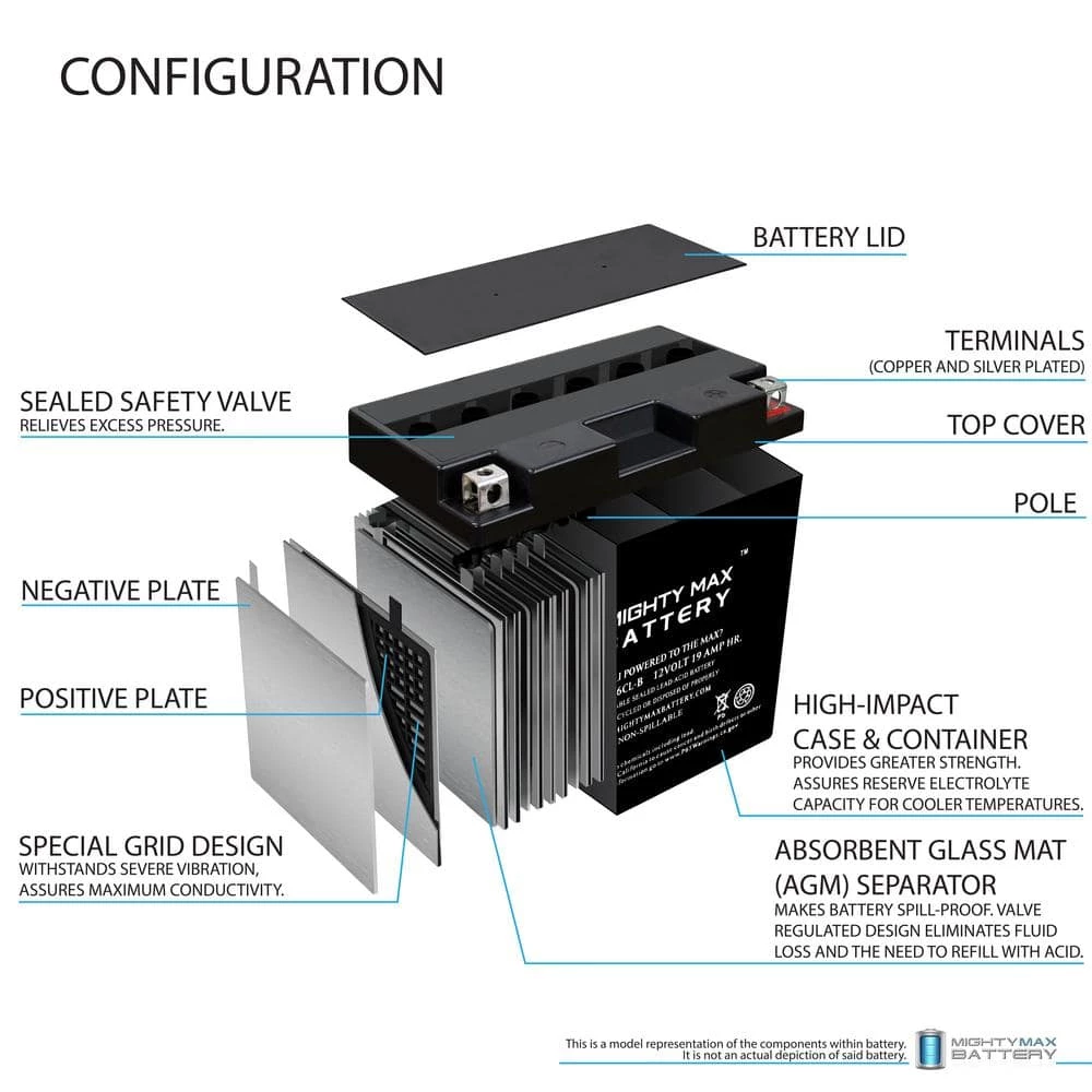 This YB16CL-B is a sealed lead-acid (SLA) absorbed glass mat (AGM) rechargeable battery. AGM and GEL batteries are lead-acid and of the same battery chemistry. This battery comes already charged, sealed, maintenance free and ready to install. Premium quality absorbed glass mat technology (AGM) is ideal for ATVs, Motorcycles, Personal Watercraft, Jet Ski’s, Snowmobiles and more.
