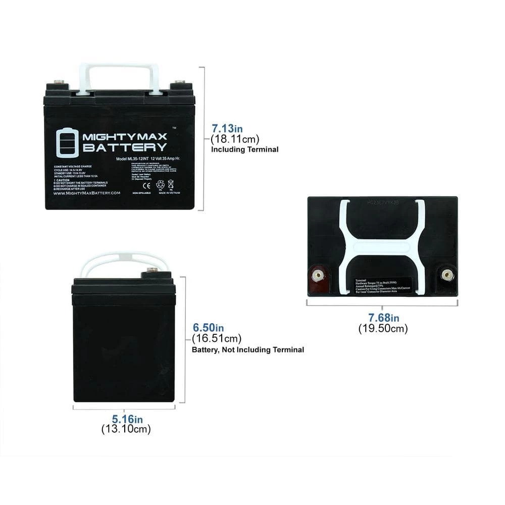 Delivering power when you need it, the MIGHTY MAX ML35-12 Internal Thread 12-Volt 35 Ah uses a state of the art, heavy-duty, calcium-alloy grid that provides exceptional performance and service life in both float and cyclic applications. The ML35-12 Internal Thread is an Absorbent Glass Mat (AGM) technology with a valve regulated design, that can be used in enclosed and indoor environments without leaking or maintenance, providing a superior performance for thousands of models. MIGHTY MAX SLA batteries are utilized in a wide variety of applications including, Consumer Electronics, Electric Vehicles, Engine Starters, Golf Carts, Hunting, Lawn and Garden Tools, Medical Mobility, Motorcycles, Power sports, Portable Tools, Solar, Toys and Hobby, Access Control Devices, Emergency Lighting, Security and more.