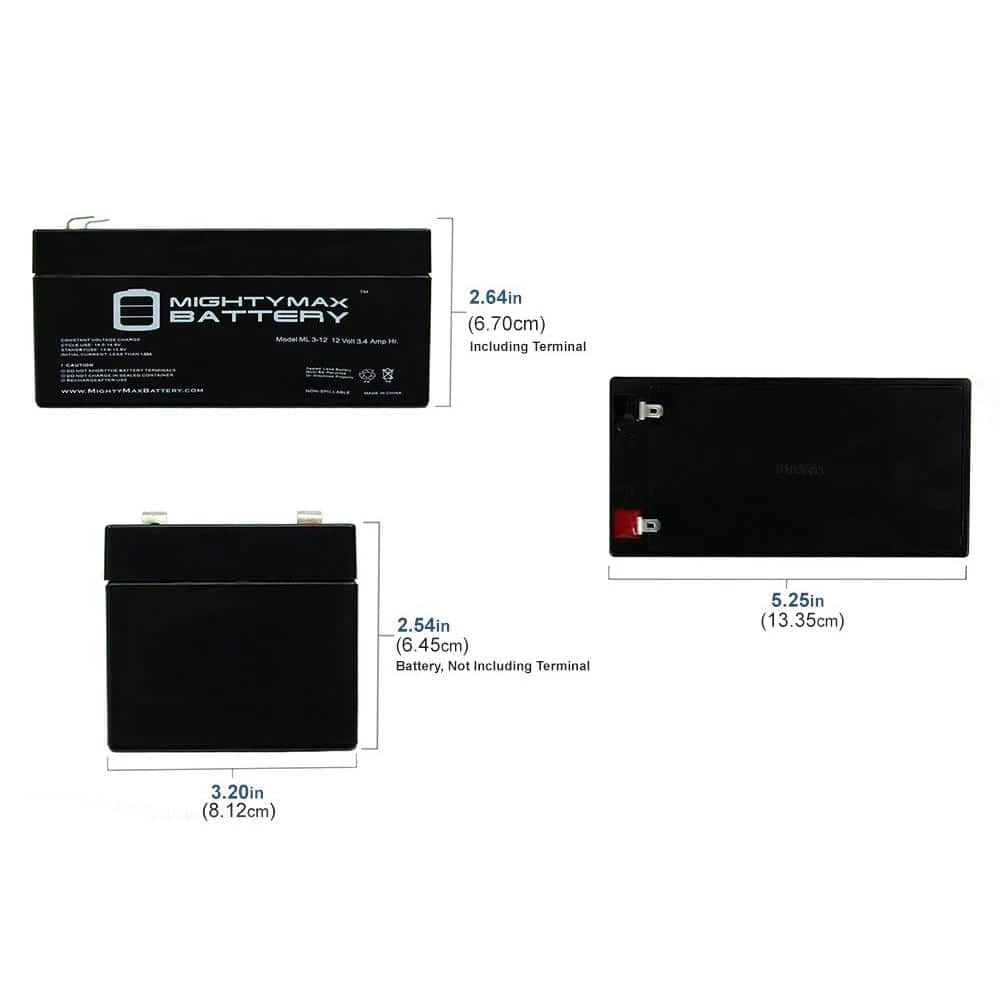 Delivering power when you need it, the MIGHTY MAX ML3-12 12-Volt 3 Ah uses a state of the art, heavy-duty, calcium-alloy grid that provides exceptional performance and service life in both float and cyclic applications. The ML3-12 is an Absorbent Glass Mat (AGM) technology with a valve regulated design, that can be used in enclosed and indoor environments without leaking or maintenance, providing a superior performance for thousands of models. MIGHTY MAX SLA batteries are utilized in a wide variety of applications including, Consumer Electronics, Electric Vehicles, Engine Starters, Golf Carts, Hunting, Lawn and Garden Tools, Medical Mobility, Motorcycles, Power sports, Portable Tools, Solar, Toys and Hobby, Access Control Devices, Emergency Lighting, Security and more.