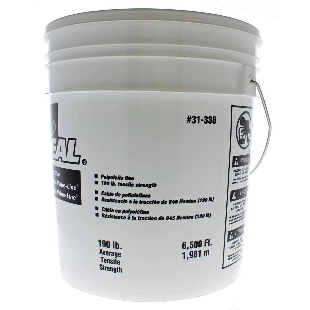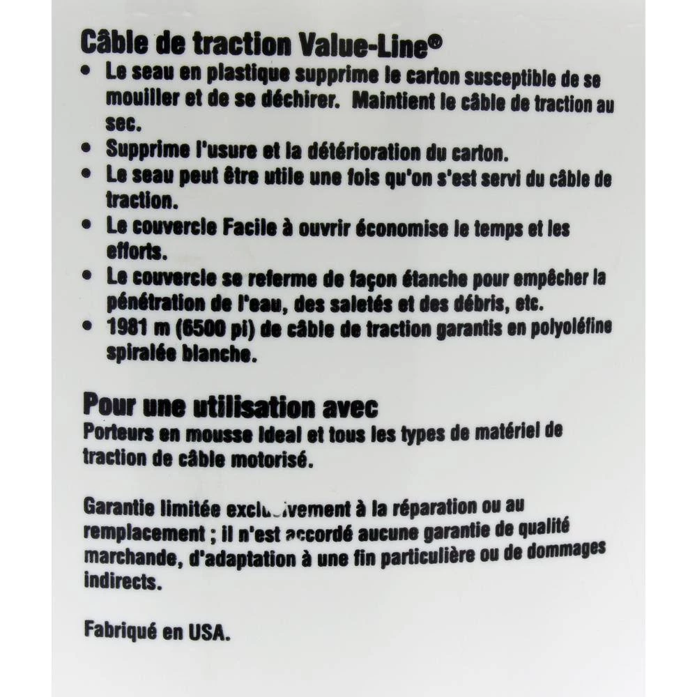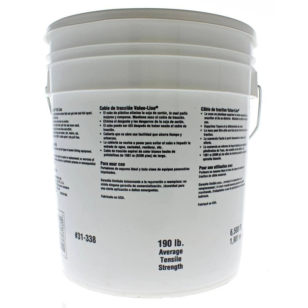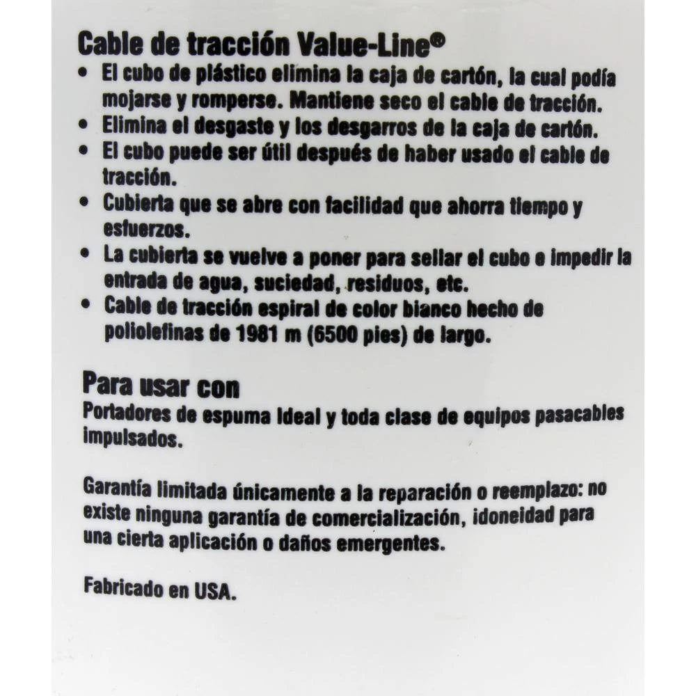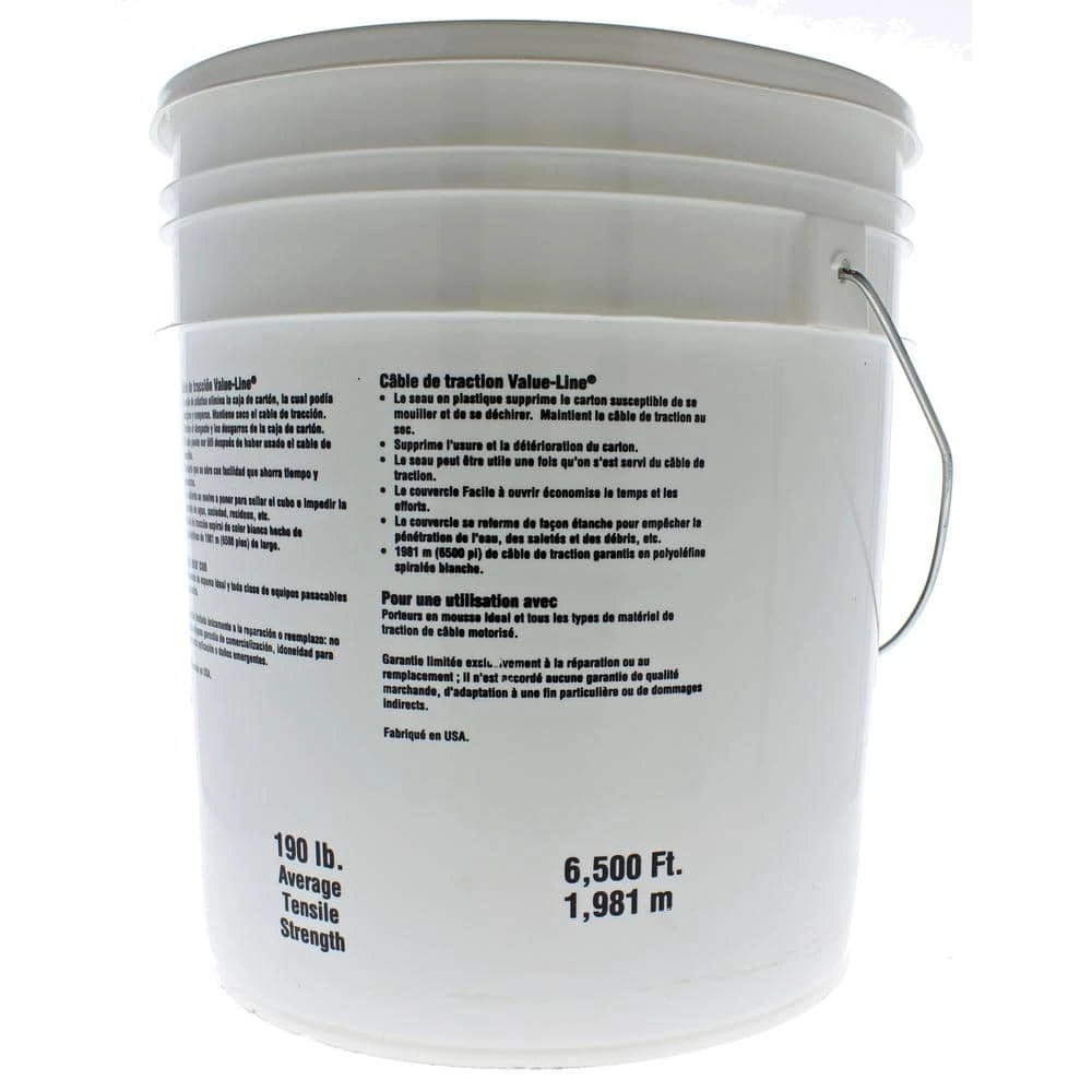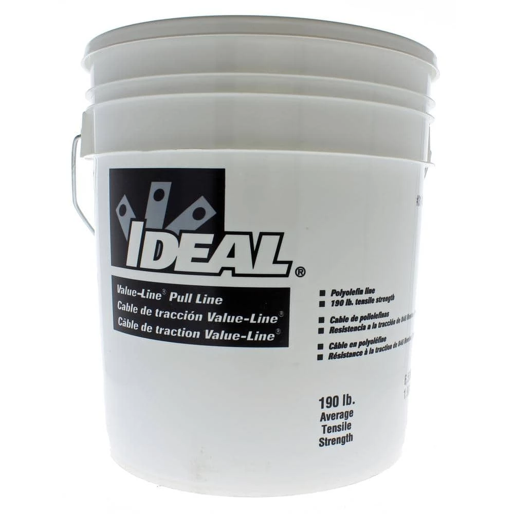 Ideal Valu-Line Pull Line is white with gray tracer for easy identification. It is a continuous-fiber polyline that can be blown directly into conduit. It will not rot or mildew, and can be left in conduit for future use. Pull-line features convenient packaging in a bucket with pre-punched top for easy access, and to keep the pull-line from spilling or tangling. It is a standard duty pull-line and is 6500 ft. L.