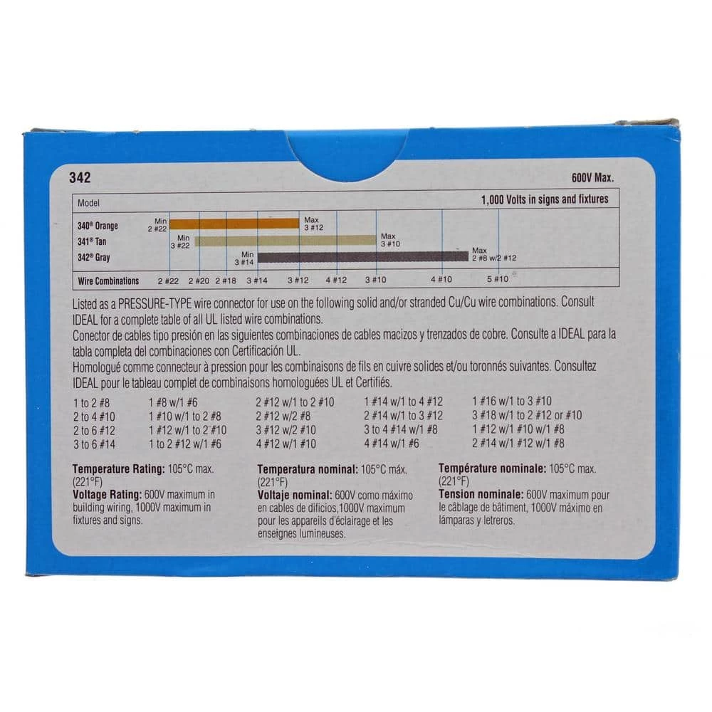 - Minimum wire range: 3 #14 AWG, maximum wire range: 2 #8 with 2 # 12 AWG