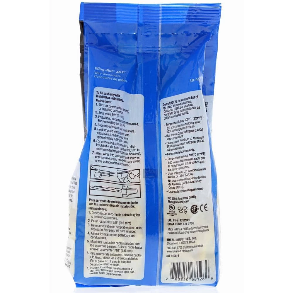 The Ideal Wing-Nut Wire Connector provides an easy, secure grip when connecting a wide range of wires. The specially designed contoured wings make for extra torque and quick work on any electrical job. The wide range, live-action spring is flexible enough to handle small combinations with ease but then expands to accept large combinations when you need it. It can also be reused on same size or larger combinations for quick and easy circuit changes and additions.