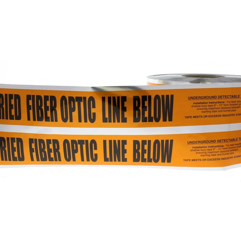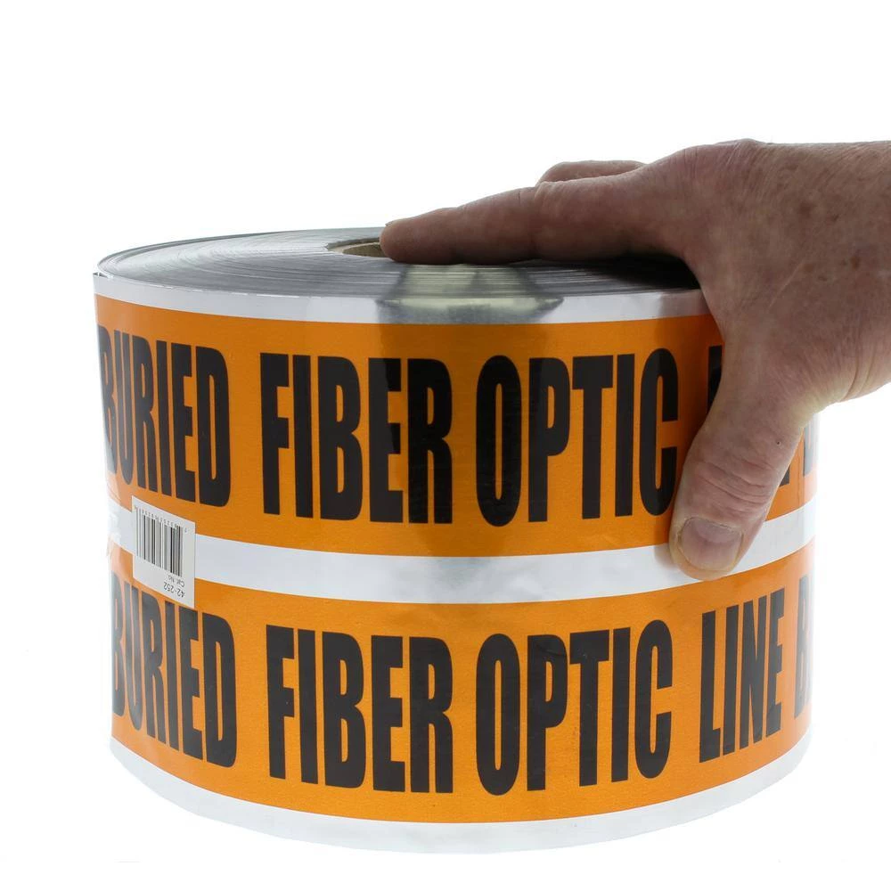 This safety tape is designed to be used underground over any buried fiber optic line to provide warning to anyone digging in the area of the risk posed by the existence of the fiber optic line below. Solid Aluminum Foil core makes this product detectable by commonly used metal detectors. Caution message clearly printed on the tape provides added protection.