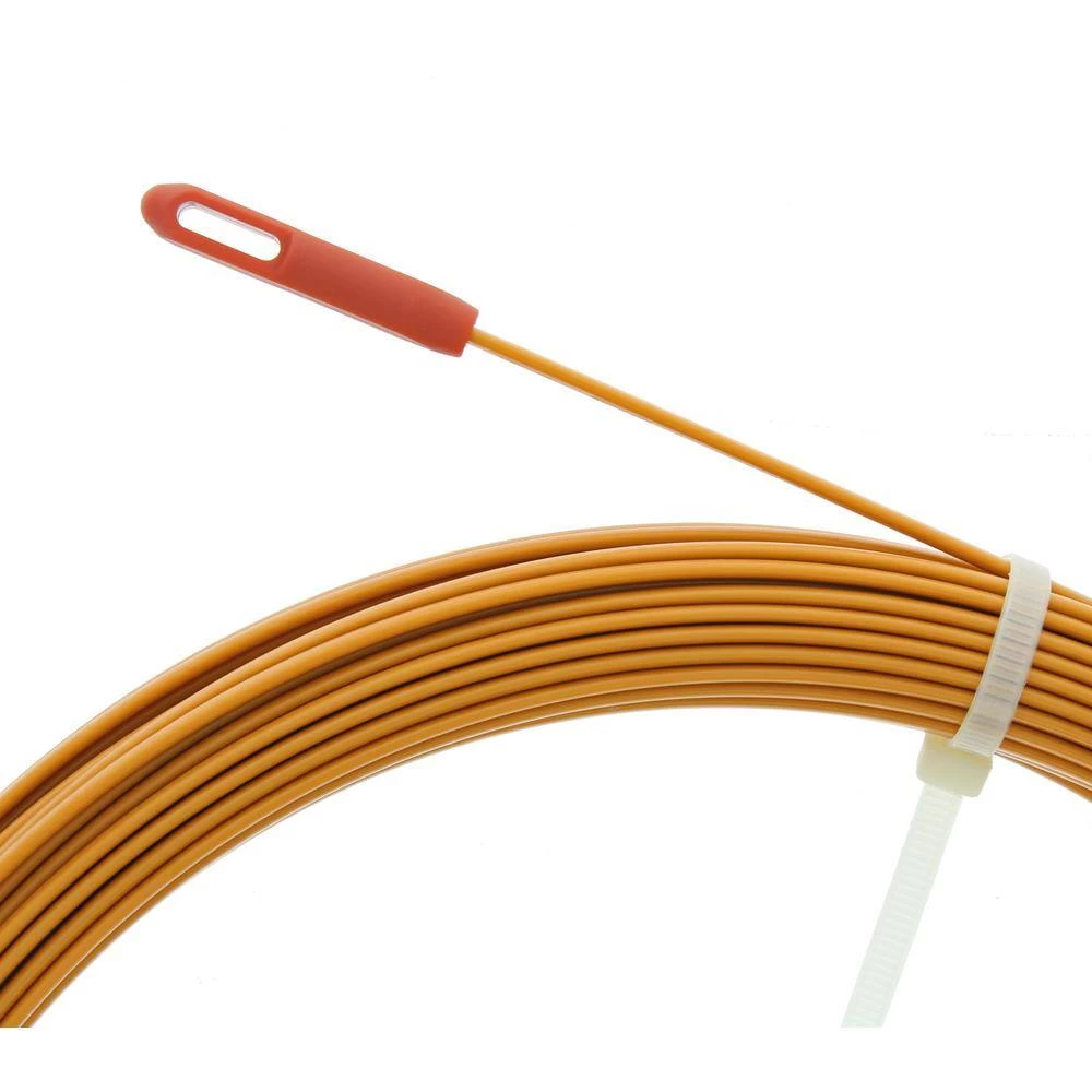 Fiberglass core provides non-conductive and non-arcing capabilities for use near live circuits. This fiberglass is an economy fiberglass which is lighter, and less costly than our S-Class fiberglass. Recommended for light duty work, or for those that don’t do a high volume of fishing, this fish tape is a step up from traditional nylon fish tapes. More column strength for pushing ability, and less coil memory than nylon.