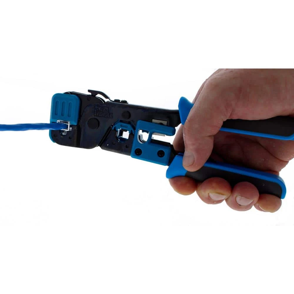 - Crimp with standard RJ-45 modular plug crimp tool