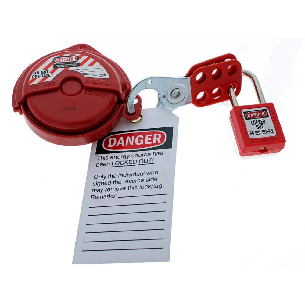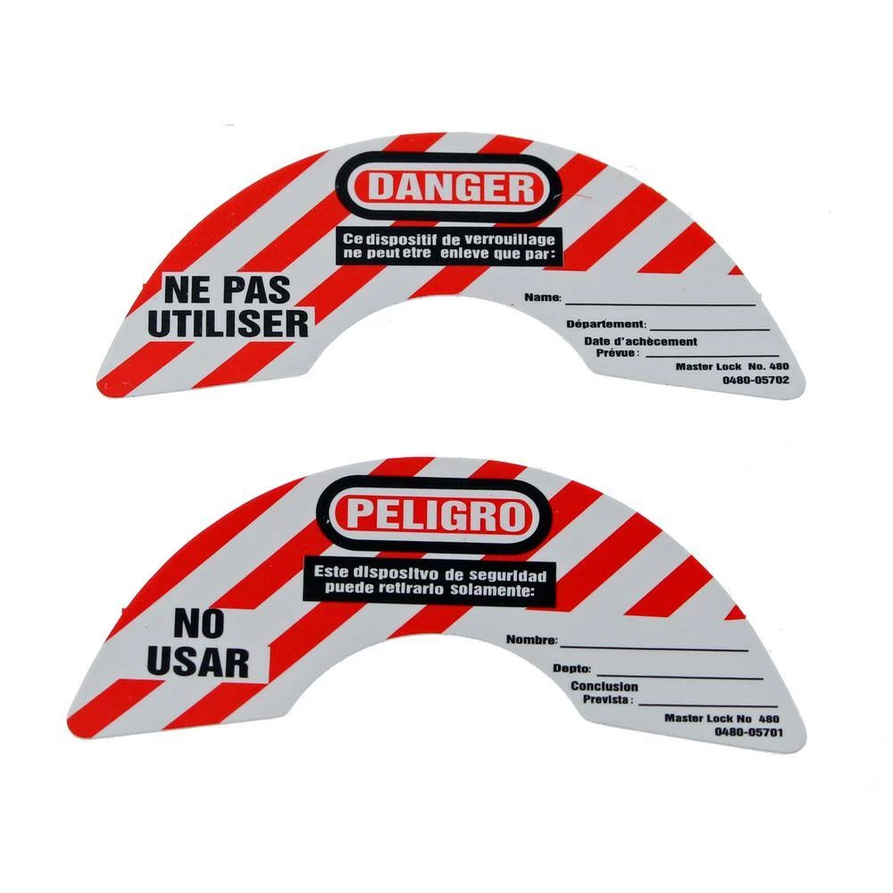 - Complete with high-visibility permanent safety labels (English, French and Spanish) that can be written on to identify the responsible person, then erased for the next job