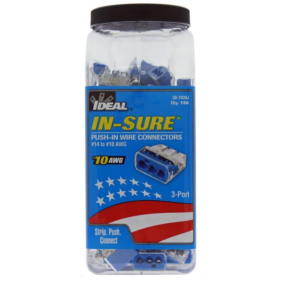 The In-Sure Push-In wire connector is perfect for residential, light commercial, lighting retrofit and pre-fab wiring systems. A low insertion force makes them the fastest, easiest, no-twist push-in connector on the market. It’s compact size make installation easy and its clear shell gives a visual inspection of the connection.