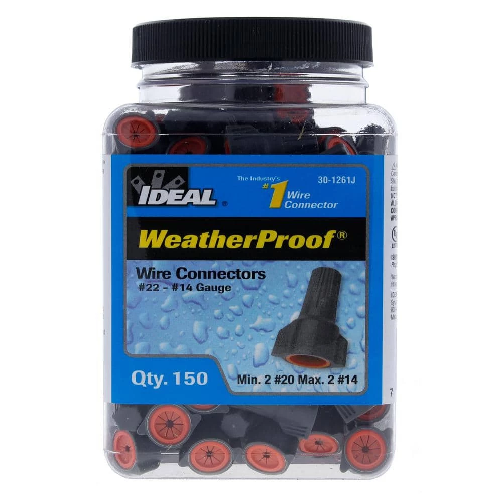 Designed specifically for above-grade, interior or exterior connections exposed to damp, wet or corrosive environments, WeatherProof Wire Connectors are the perfect twist-on solution for connections that require protection from the elements. The swept-wing design makes the connector easy and comfortable to apply, while the pre-filled, silicone-based sealant protects against moisture and corrosion, eliminating the need for heat-shrink or excessive taping. WeatherProof Wire Connectors feature tough, flame-retardant shells that withstand most rugged environmental extremes and are listed to UL 486D for use in damp or wet locations that are above ground.