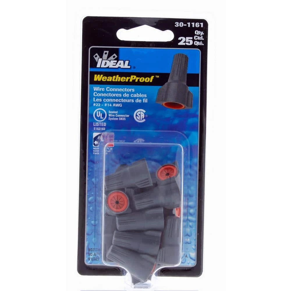 Designed specifically for above-grade, interior or exterior connections exposed to damp, wet or corrosive environments, WeatherProof Wire Connectors are the perfect twist-on solution for connections that require protection from the elements. The swept-wing design makes the connector easy and comfortable to apply, while the pre-filled, silicone-based sealant protects against moisture and corrosion, eliminating the need for heat-shrink or excessive taping. WeatherProof Wire Connectors feature tough, flame-retardant shells that withstand most rugged environmental extremes and are listed to UL 486D for use in damp or wet locations that are above ground.
