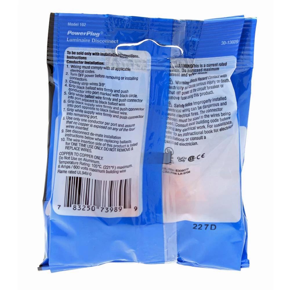 The PowerPlug features patented Ideal push-in technology that quickly locks wires in place. It helps reduce electrical shock hazard during ballast replacement by safely disconnecting hot and neutral ballast wiring while offering additional safety since both halves meet UL and CSA finger-probe safety requirements. Easily fits through 1/2-in. knockouts for quick installation.