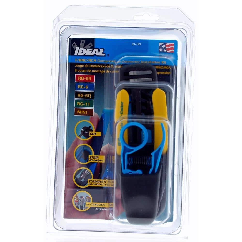 - Applications include: cutting coax; stripping RG-59/6/6 quad/ plenum coax; compressing F/BNC/RCA/RG-11 F compression connectors on to coax cables