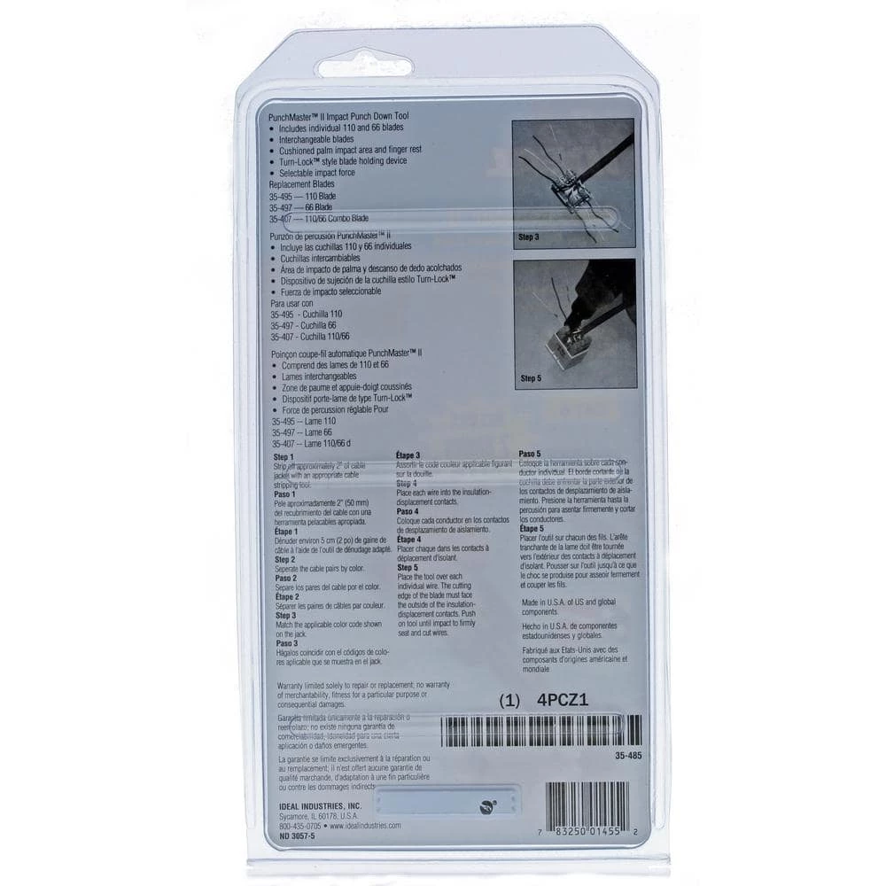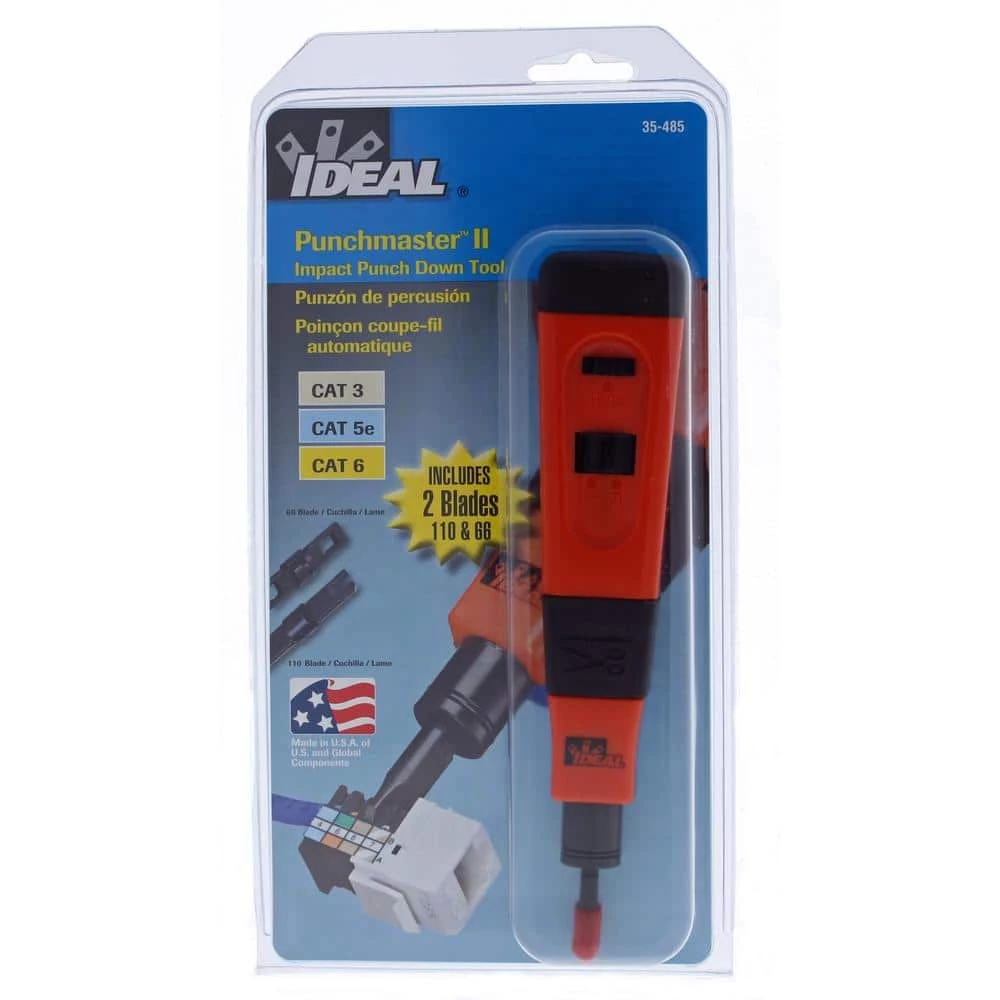 The Ideal Punch Down Tool is great for New and Professional Installers. With an impact-absorbing cushioned grip for high volume installers to reduce operator stress. Storage compartment with unique locking device provides convenient storage for spare blades.