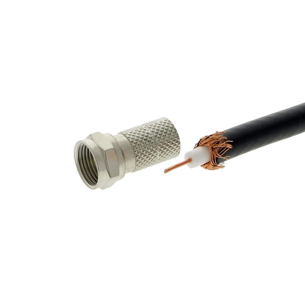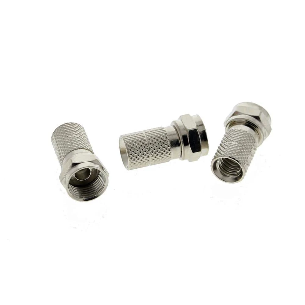 Twist-on F connectors are an economical solution that requires no termination tool. Twist-on connectors are designed for indoor coax terminations for standard video and other RF applications. These connectors offer a threaded design and a knurled body for easy twisting.