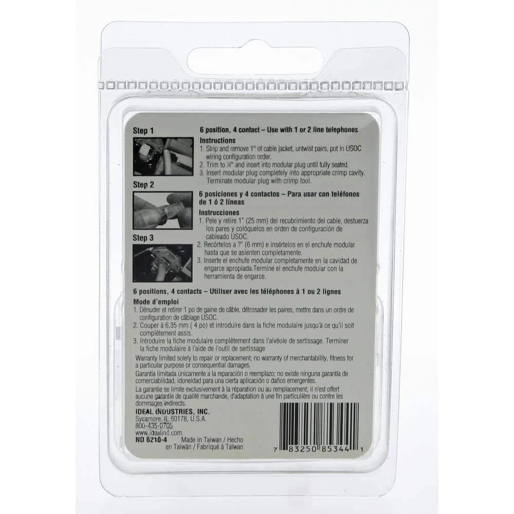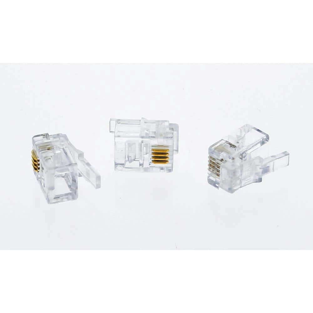 - 6-Position, 4-contact RJ-11 modular plug for Cat 3/5e and traditional phone wire