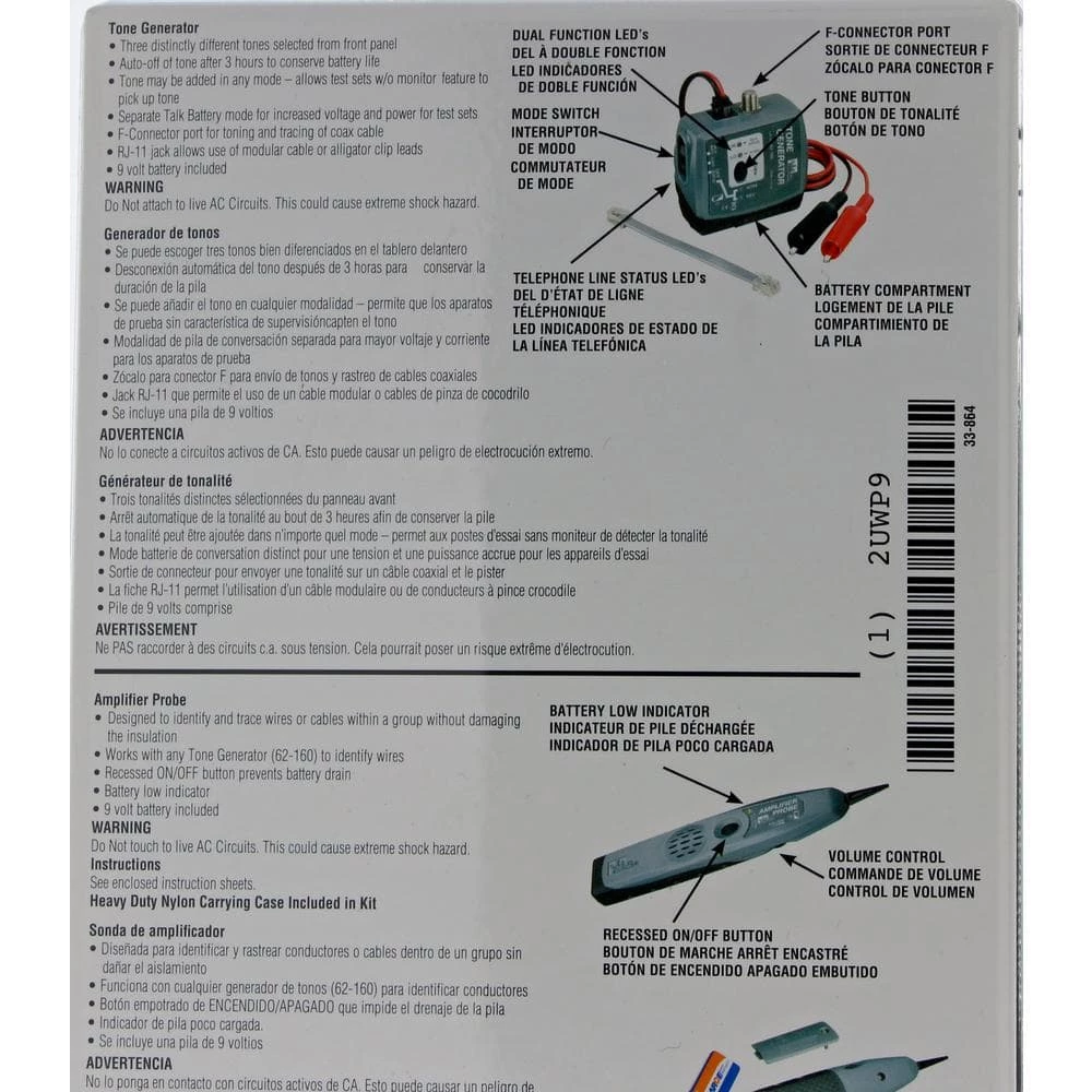 - Kit includes: tone generator, amplifier probe, soft black nylon carrying case, cable assemblies and flat tip