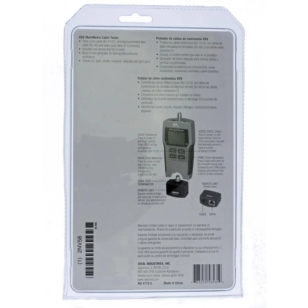 The VDV MultiMedia Cable Tester is designed to test all common low voltage cabling systems found in today’s automated homes; voice, data or video networks. The VDV MultiMedia Cable Tester has a large, bright LCD display and four momentary buttons used to directly access each function. The remote attaches to the main unit for storage and patch cable testing.